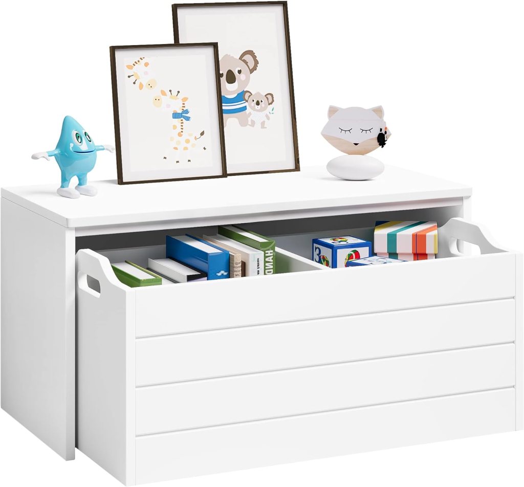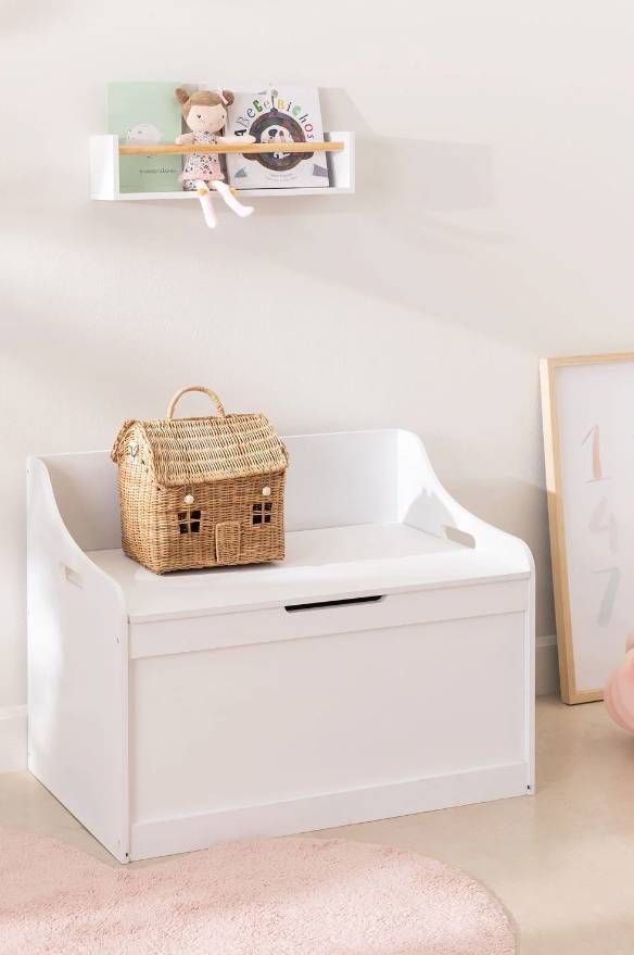 En tiendas multiproducto como Amazon también podéis encontrar baúles de almacenaje de juguetes similares al de Ikea. Este lo es en diseño, de aire minimalista, cerrado y en color blanco, y en precio, porque cuesta 72,99 euros. Es resistente y duradero, según promete el fabricante, y tienen una carga superior en su panel superior de 50 kilos, por lo que sirve para sentarse a leer, por ejemplo (los peques, no los adultos).