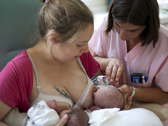 La forma más cómoda de que los gemelos tomen el pecho