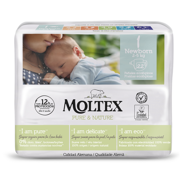 Además de tener todas las funciones que podría tener un pañal desechable, como la super absorción, las barreras anti-fugas y lso materiales muy suaves, cuenta con 3 sellos de calidad medioambiental: FSC -certificado de celulosa exenta de cloro-, NaturemadeStar -fabricado con electricidad renovable- y MyClimate -con certificado de emisiones de CO2 compensadas y certificadas-. Tiene tallas desde los dos kilos hasta los 30 kilos. El precio va desde los 9 hasta los 16 euros.
