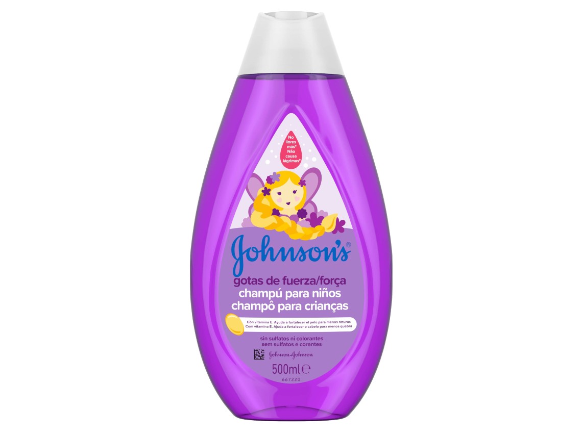 El objetivo de este champú de Johnson's que lleva por nombre "Gotas de fuerza" es fortalecer el cabello para evitar que se rompa. Está especialmente pensado para que el cuero cabelludo de los niños, que va desarrollándose a medida que los niños crecen, no sufra con estos cambios sino que se adapte hasta que después de el salto a un producto específico para adultos.