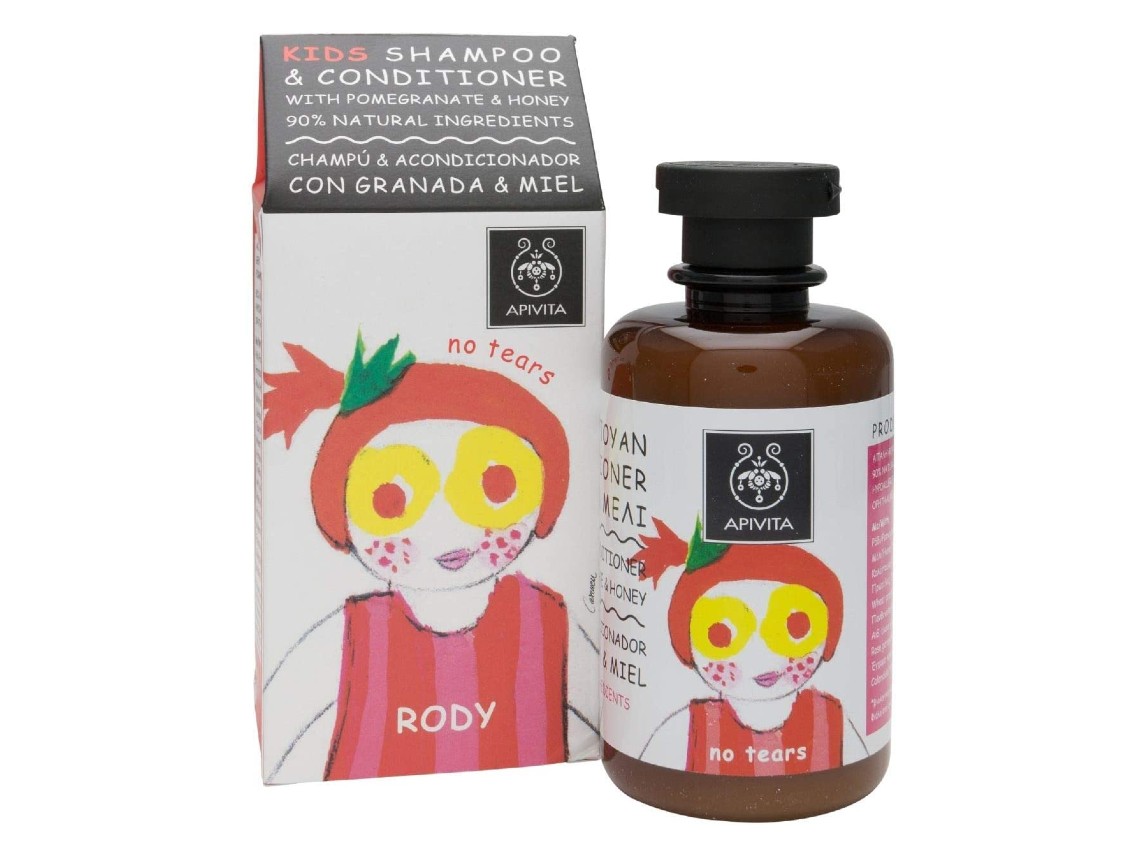 Con un aroma delicioso y ofreciendo el máximo mimo para el cabello de los peques, este champú y acondicionador dos en 1 con granada & miel de Apivita es fantástico.